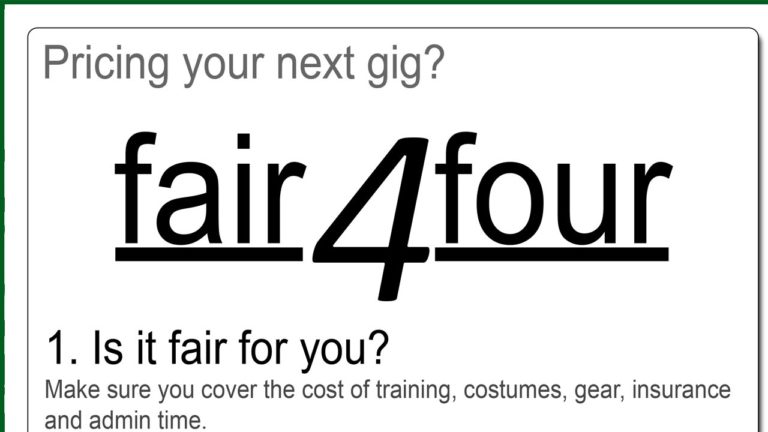 Want to know how to price your next circus or aerial performance? Follow the Fair 4 Four philosophy. Make sure it is fair for you, your teachers, the art form and the client. Please feel free to download and repost this flyer.