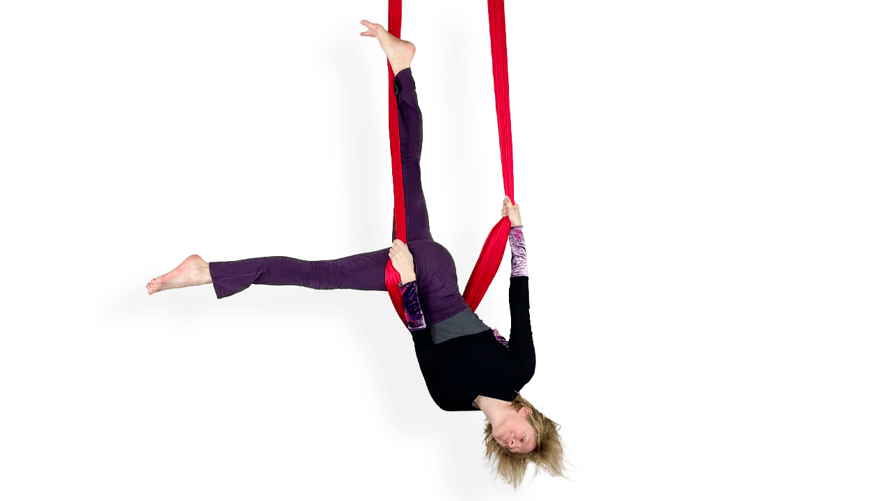 These are the next steps we teach to our aerial sling students after they’re comfortable with Hip Hop Melt. The next steps can be started right away and they lead toward specific future goals which are often the most advanced aerial sling skills.