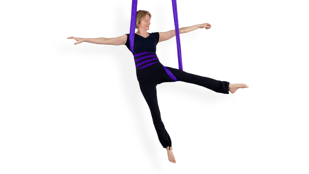These are the next steps we teach to our aerial sling students after they’re comfortable with Hollow Body Balances. The next steps can be started right away and they lead toward specific future goals which are often the most advanced aerial sling skills.