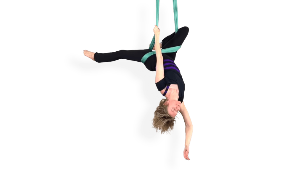 Forward and backward rolls from an Inside Seatbelt support on aerial sling are so much fun. They are definitely a favorite of many of our aerial sling students. In a Seatbelt wrap, we can roll forwards or backwards and always end up where we started, so these are sometimes also called Infinity Rolls. This move is very versatile and it can be comboed in a lot of different ways. This rolling move on sling can also be styled in a lot of different ways, for example, adding split legs or changing the tempo.