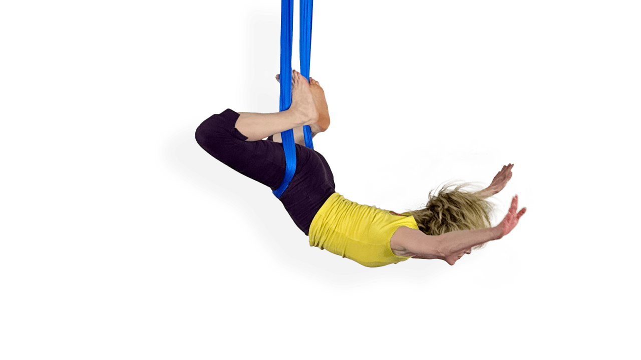 These are the next steps we teach to our aerial sling students after they’re comfortable with Inside Seatbelt: Rock and Roll Entry. The next steps can be started right away and they lead toward specific future goals which are often the most advanced aerial sling skills.