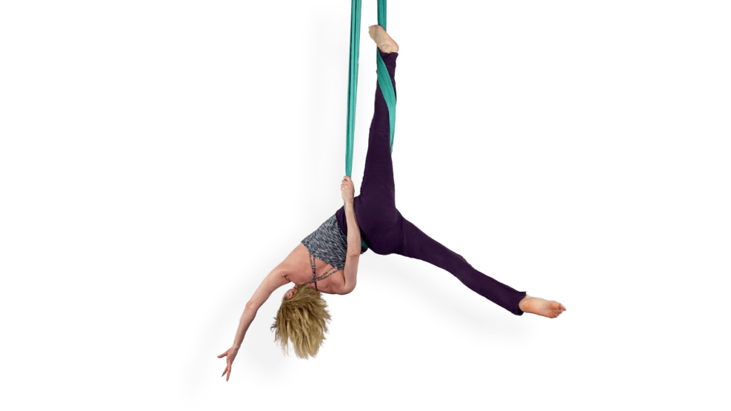 These are the next steps we teach to our aerial sling students after they’re comfortable with Russian Roll: One Leg. The next steps can be started right away and they lead toward specific future goals which are often the most advanced aerial sling skills.