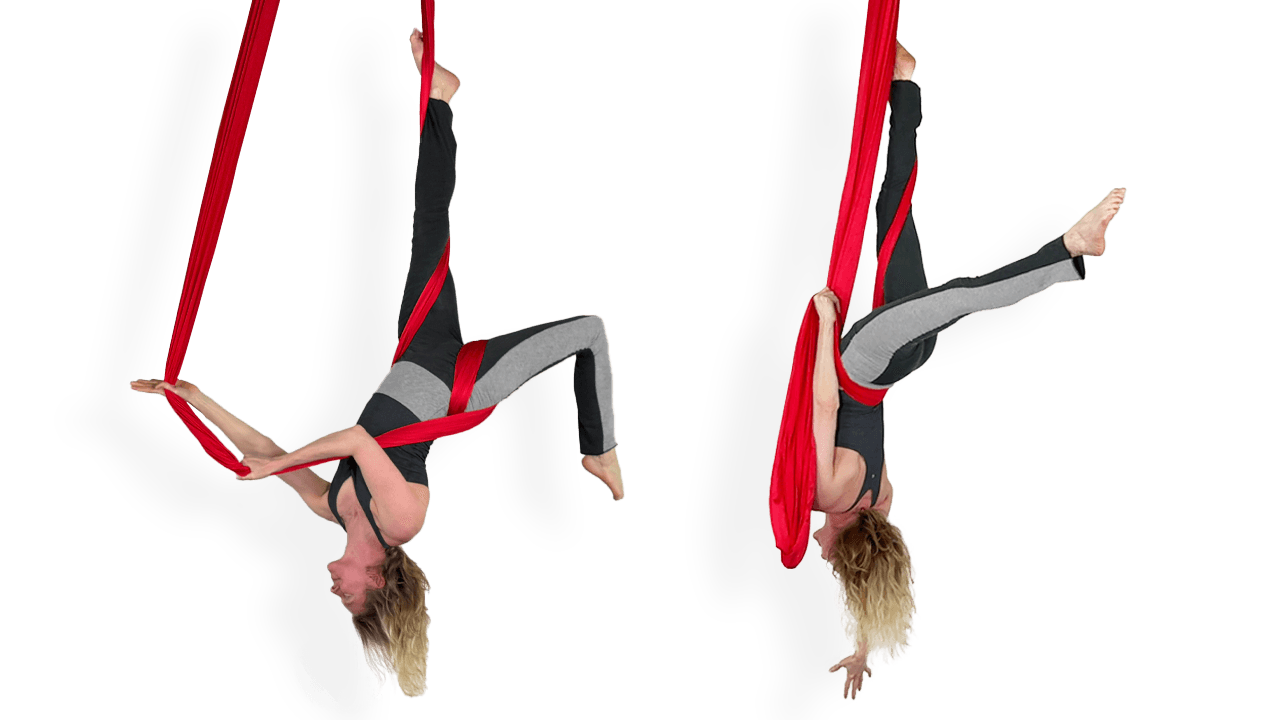 These are the next steps we teach to our aerial sling students after they’re comfortable with Same Side Crucifix & Same Side Wrap. The next steps can be started right away and they lead toward specific future goals which are often the most advanced aerial sling skills.
