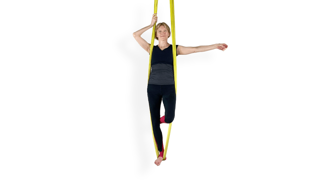 These are the next steps we teach to our aerial sling students after they’re comfortable with Seated to Standing. The next steps can be started right away and they lead toward specific future goals which are often the most advanced aerial sling skills.