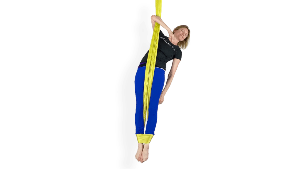 These are the next steps we teach to our aerial sling students after they’re comfortable with Skin the Cat Forward Dive. The next steps can be started right away and they lead toward specific future goals which are often the most advanced aerial sling skills.