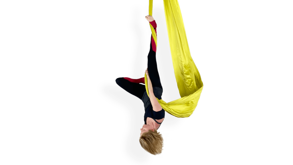 These are the next steps we teach to our aerial sling students after they’re comfortable with Thigh Hitch Basics & Challenges. The next steps can be started right away and they lead toward specific future goals which are often the most advanced aerial sling skills.